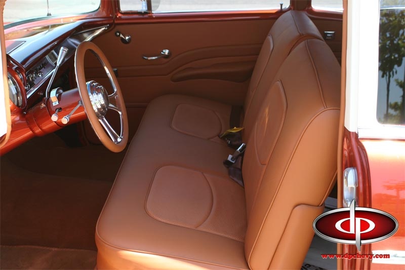 Inside, we installed an air conditioning system and re-did the interior in a stunning deep tan leather. The whole project was built to John’s specs and he’s been enjoying it every since!